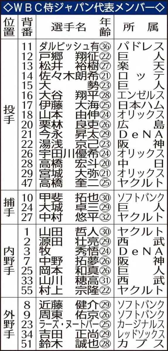 侍ジャパンの大谷翔平 Photo by スポニチ WBC最終メンバー登録締め切り 全20チームの最終メンバーは10日に発表 ギャラリーで見る この記事のフォト 2023年02月09日の画像一覧 もっと見る 2023年02月09日の画像をもっと見る