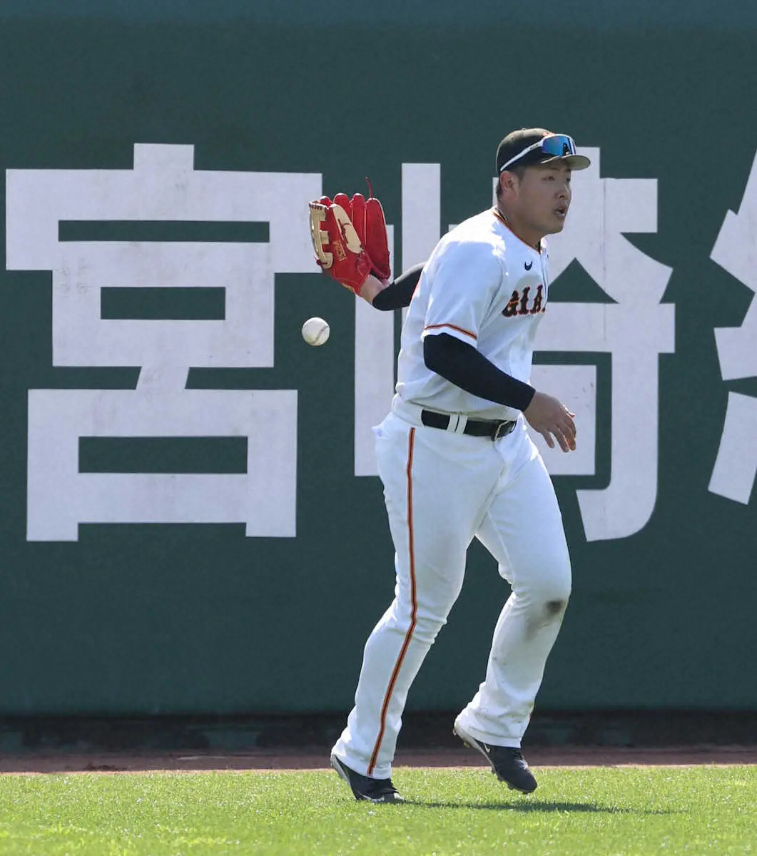 巨人・岡本和 本職さながら軽快に左翼守備 「暇つぶしです」はぐらかすもWBCに備え真剣