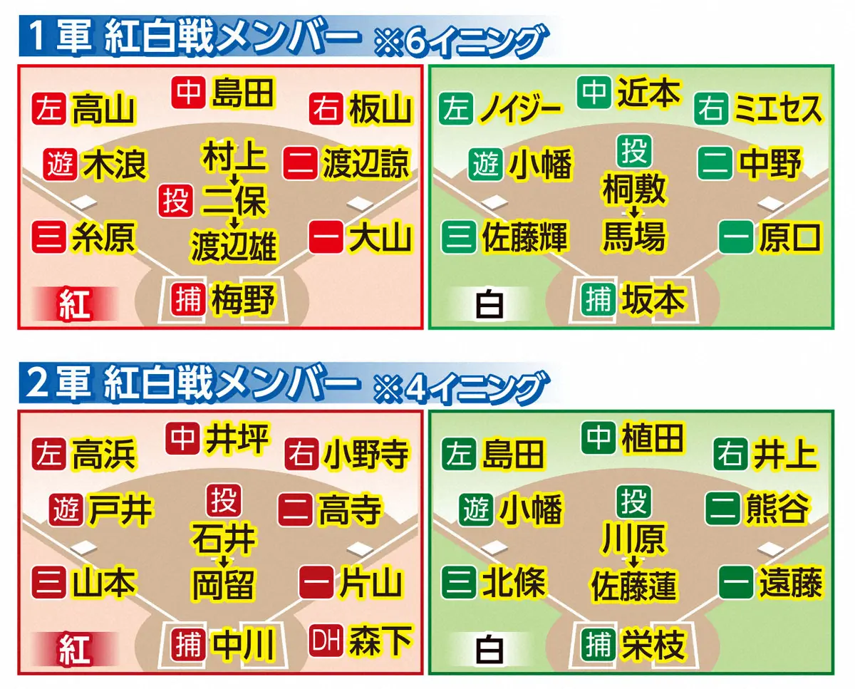 阪神の紅白戦メンバー