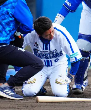 DeNAは11日、沖縄・宜野湾で紅白戦の試合中。0―0の白組の初回の攻撃で、1死から森が坂本の直球を頭部に受け、死球退場となった。