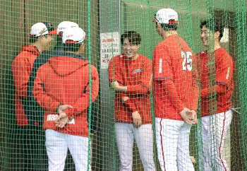 紅白戦を前に、大瀬良と森下がサプライズで先発オーダーをアナウンスした。