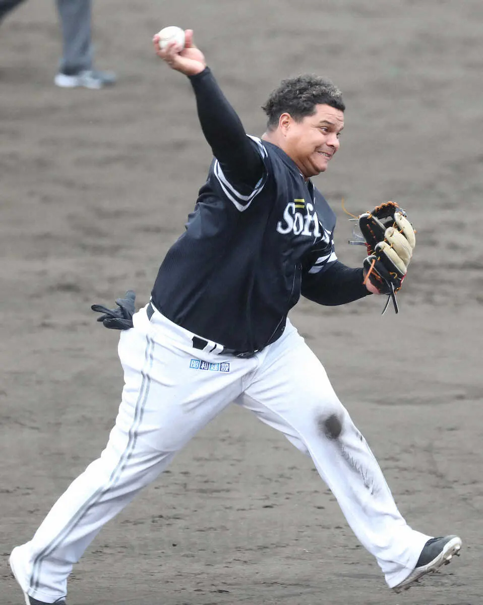 ソフトB・アストゥディーヨ 動ける亀だ!ジャンピングスロー連発 愛称裏切る軽快さで逆転三塁猛アピール