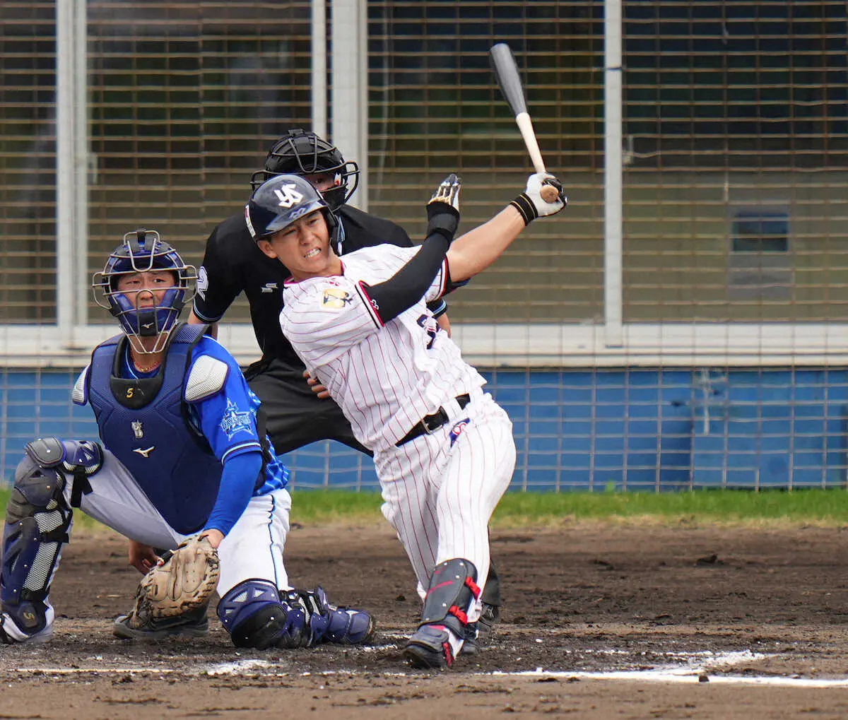 6回に左前適時打を放つなど打っては2安打1打点。「バッティングで期待していただいていると思う」と本職の捕手とともに外野での出場機会を目指す。(青森 正宣)