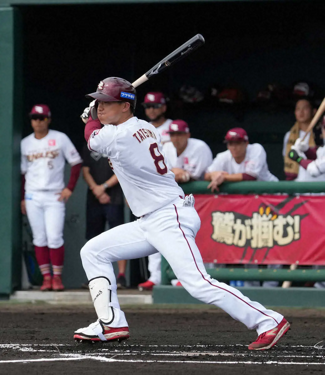 初回に左前打を放つと、続く小深田の初球で二盗。犠打で三塁に進み、伊藤裕の左前打で先制のホームを踏んだ。3回2死走者なしでは中前打。納得のアピールに「辰己には勝てないと思わせたかった。結果は出ると思っていた」と胸を張った。