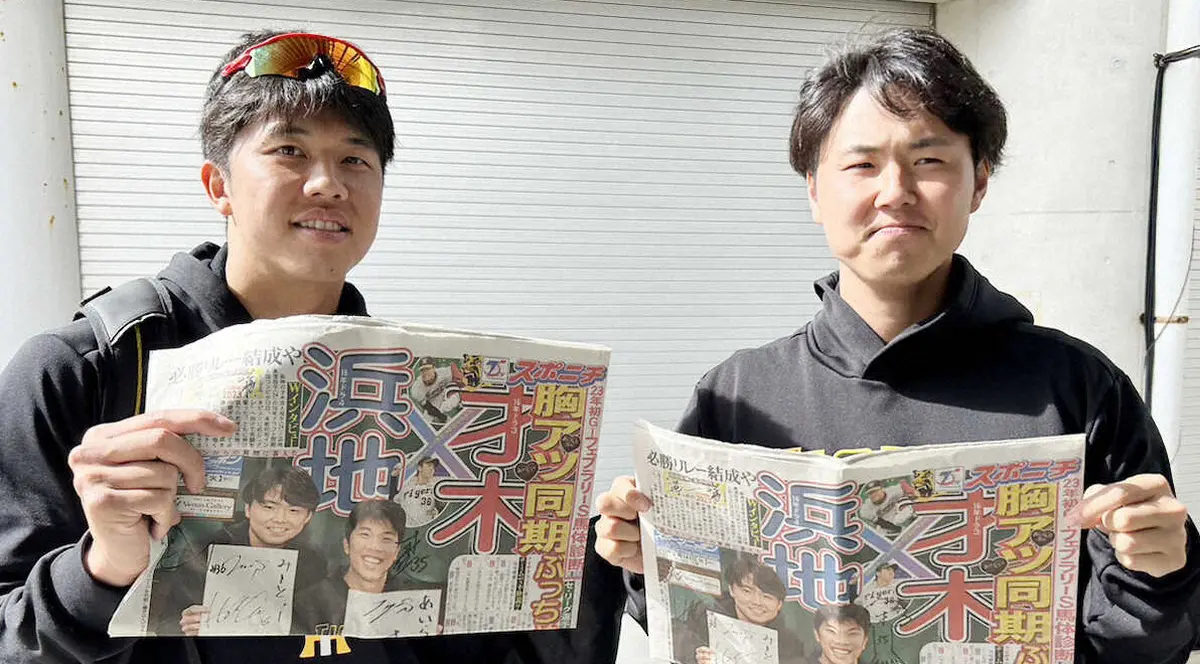 “胸アツ”企画は海の向こうにも届いたようで、米国からメッセージをくれたのはアスレチックス・藤浪の専属通訳兼トレーナーを務める鎌田一生氏。浜地と才木の入団1年目を阪神トレーナーとして担当し「2人が1面飾る時が来るとはね。うれしいね」と感激していた。すべては昨季の躍進から。今季も2人から目が離せない。(阪神担当・遠藤 礼)