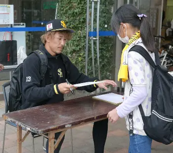 初回の右翼線への当たりでは俊足を飛ばして悠々と三塁へ到達。3回には右前打、5回には右越え二塁打を放った。守備でも2回2死でアストゥディーヨが放った二遊間のゴロを好捕。走攻守全てで順調な仕上がりを見せている鷹のリードオフマンは「良かったかなとは思うけど、これからもっと突き詰めていけるようにしたい。対外試合も入ってくるので、いいアピールがしっかりできるように」と話した。