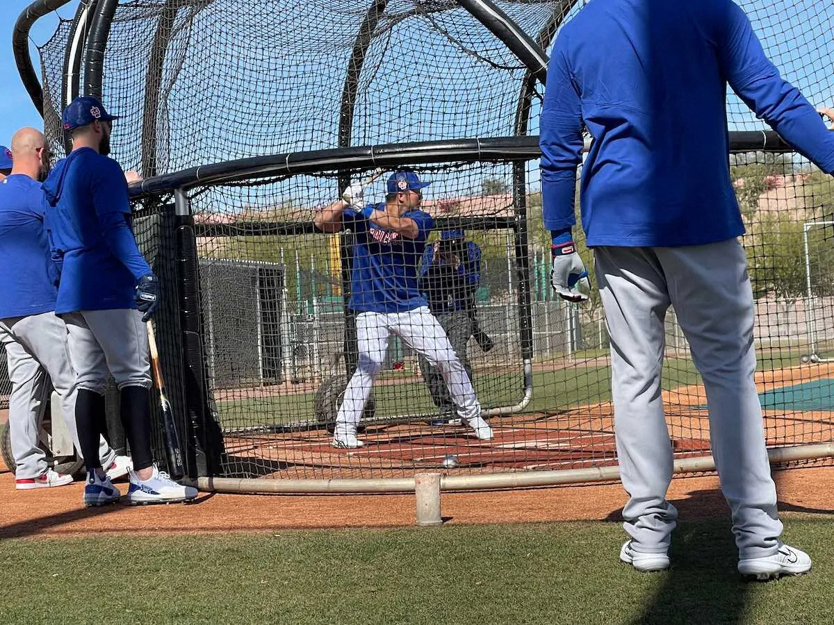カブスの鈴木がフリー打撃で柵越えを連発。弾丸ライナーあり、高々と舞い上がる放物線ありという打球に、レイズから移籍のマストロブオーニは「パワーあるね!」と驚くばかりだった。