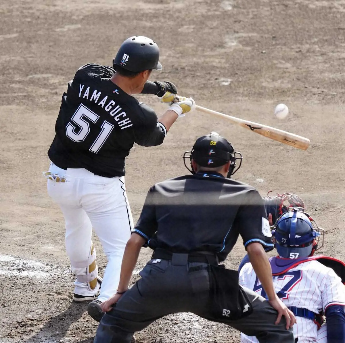 4年目の昨季はチーム最多の16本塁打。自主トレではWBCに出場する西武・山川に弟子入りし、体の使い方やスイングの形、意識する打球方向などを学んだ。その山川が取り組む「風船トレ」も導入。風船を膨らませ、腹筋を意識しながらスイングするもので、山口は春季キャンプ中も継続。国内チームとの練習試合5戦で4発と結果を出した。「今は凄く状態が良くて自分の中にホームランを打てるポイントが残っている。仮に状態が悪くなっても、戻るべき“原点”があるので大丈夫」と断言する。