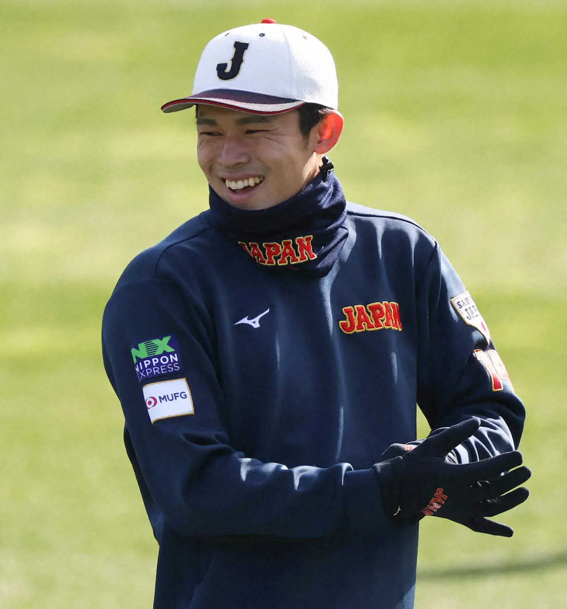 <侍ジャパン宮崎合宿>笑顔を見せる佐々木朗(撮影・平嶋 理子)