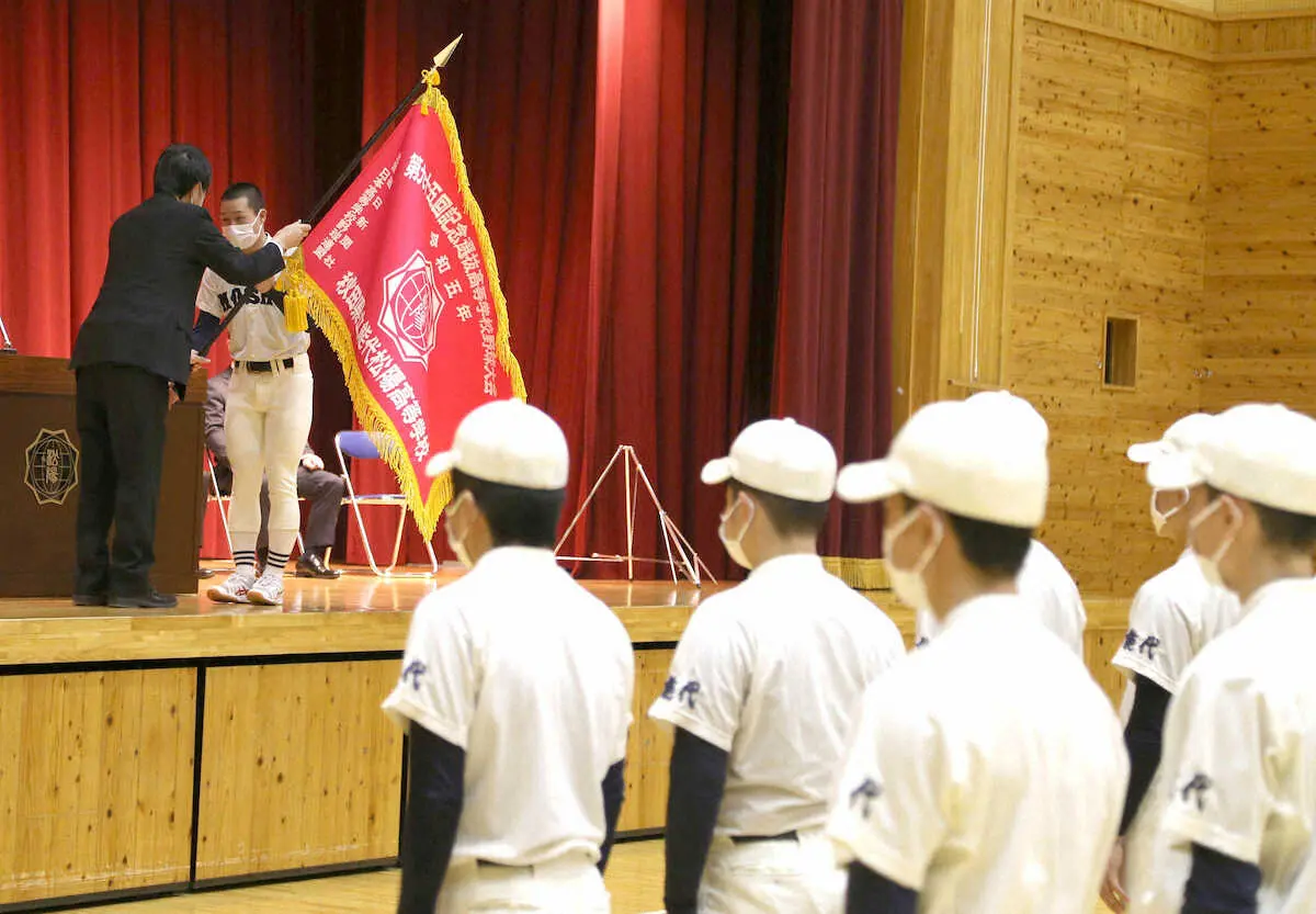 大高有生(ゆうき)主将(2年)は「選抜旗を手にして責任と自覚が深まりました。東北地区の皆様の期待に応えられるように、日本一を目指して一戦必勝で頑張ります」と決意表明した。