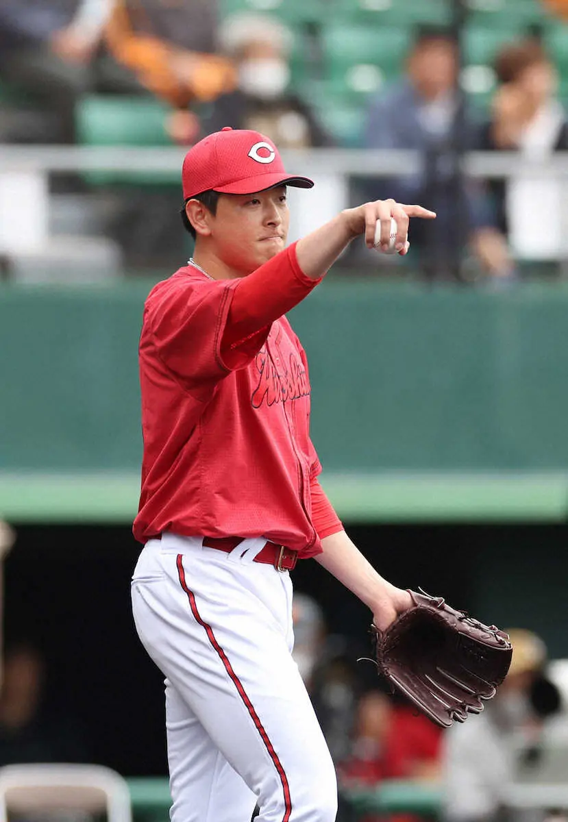 オープン戦<巨・広>初回、広島の先発・大瀬良 (撮影・西川祐介)