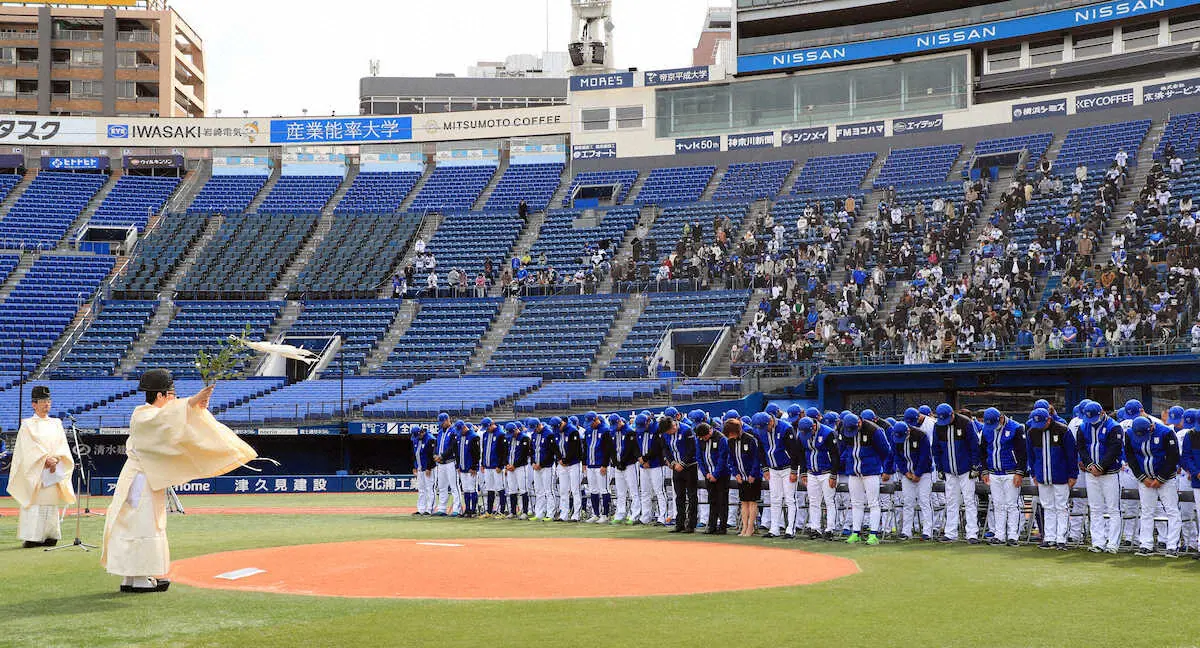 DeNAはこの日横浜スタジアムで「必勝祈願&出陣式」を行った。1、2軍選手、スタッフ、球団職員に加え、バックネット裏席が無料開放されてファン約1800人が参加。