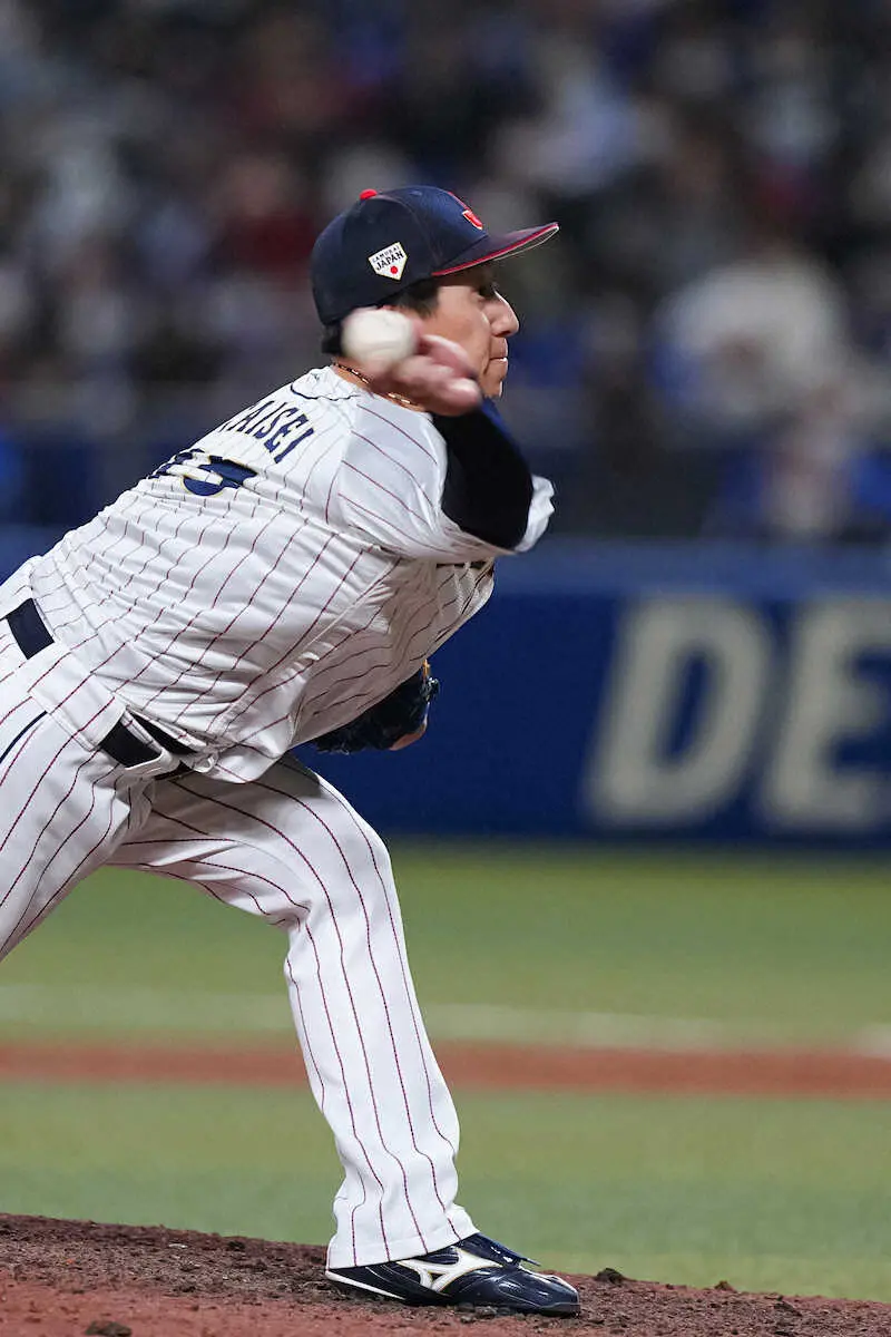 2月27日のソフトバンクとの壮行試合では直球の球速が全て153キロ以上だったが、この日は155キロ以上と1段ギアアップ。それでも本人は「今日は少し投げ急いだところもあった。球速は出たけど、納得のいくボールは宮崎の時の方が多かった。もっと良いバランスで、結果として球速がついてきたらと思う」と貪欲だ。