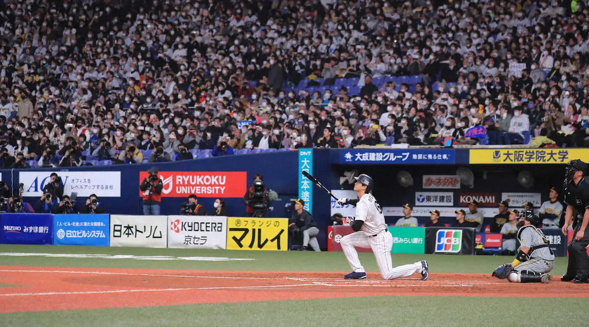 <神・侍>3回、3ランを放つ大谷(撮影・尾崎 有希)