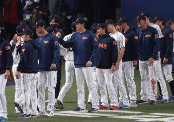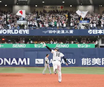 <神・侍>ナインを迎える先発の山本、ダルビッシュ大谷、伊藤、宇田川、ヌートバーら侍ジャパンナイン(撮影・平嶋 理子)