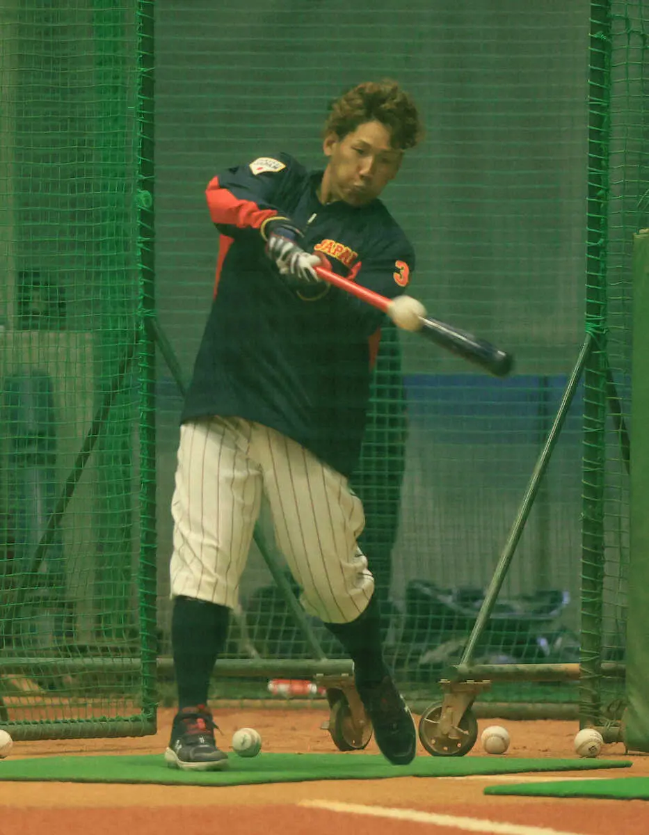一刻も早く加わりたかった侍の輪。ピックアップ練習で元同僚の山本や、村上らがスパッツにハーフパンツ姿で参加する中、吉田は大谷、ヌートバーら他のメジャー選手同様、ユニホームのズボンを着用した。室内のフリー打撃では岡本和、村上らと計70スイング。逆方向に鋭い打球を運んだ。