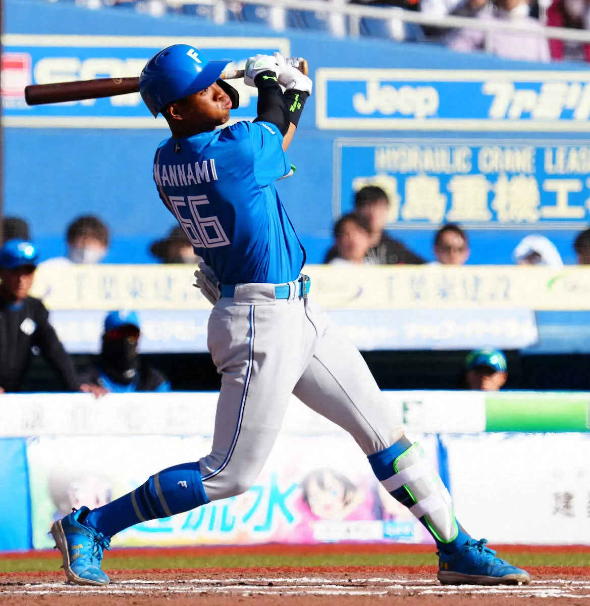名古屋で侍たちから刺激を受けた万波が、一太刀で仕留めた。7回1死、初球の高め直球を捉え、「少なくとも(外野手の)頭は越える」と手応えを得た当たり。オープン戦2号アーチが、右翼ポール際に飛び込んだ。