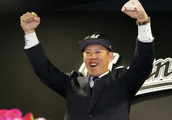 ロッテ、日本ハム間の交換トレードで移籍した両選手がZOZOマリンで入団会見を行った。