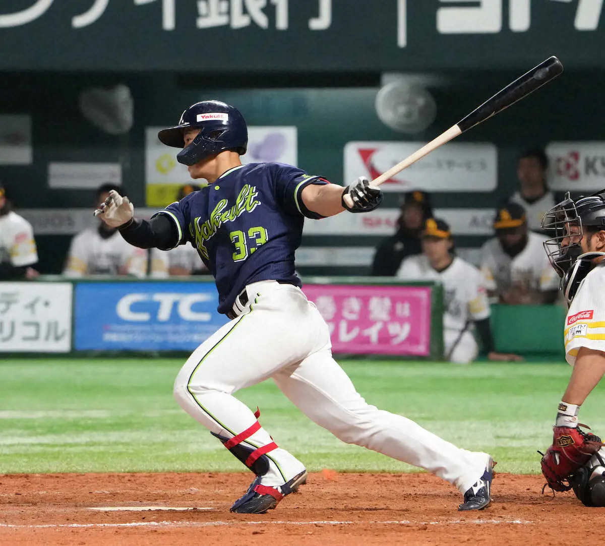 今季から外野にも挑戦中で左翼では出場していたが、高津監督が「サンタナに何かあった時のために試しておきたい」と5回守備から初めて右翼で起用。守備機会は限られたが「しっかりクッションも処理できたので、まずまずかなと」と内山。持ち味の打撃では1点を追う9回1死満塁で中前へ同点適時打を放った。
