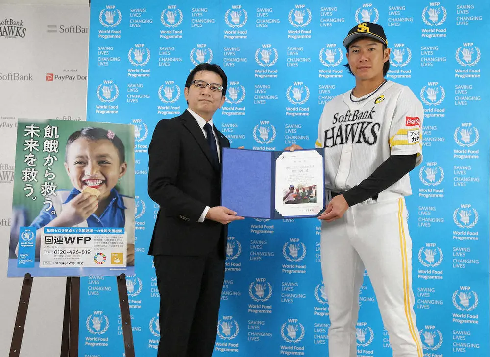 国連WFPは飢餓をゼロにすることを使命に活動する国連唯一の食料支援機関。123の国と地域で1億5000万人以上の人々に食料支援を継続。20年にはノーベル平和賞も受賞した。空腹の子どもたちに対した栄養摂取を目的に途上国の学校や毎年約2000万人の子どもに給食を届けるなどの活動を続けている。グラウンド外では父親でもあり、子どもが大好きな柳田は「自分にも子どもがいます。飢えに苦しむ子どもが、少しなればいいなと思ってやらさせてもらっています」と話した。