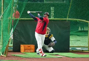 【侍ジャパン】村上「やるだけです。最後に勝てればいい」フリー打撃で2日連続看板直撃2発