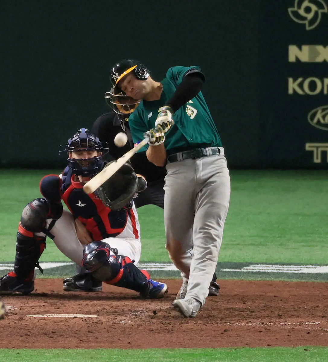 <チェコ・オーストラリア>9回、適時打を放つケネリー(撮影・尾崎 有希)
