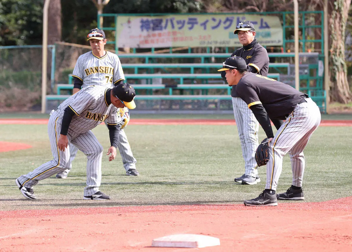 名手でならした平田ヘッドコーチ、馬場、藤本の両内野守備走塁コーチの身ぶりを交えた指導を受け、虎の主砲も新しい発見があったようだ。ここまで、今季から専念する三塁で苦戦中。遊撃を守る楽天・小深田と並んで、オープン戦12球団最多の4失策を犯している。