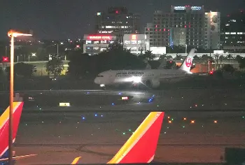 <侍ジャパン到着>マイアミ国際空港に到着した侍ジャパンを乗せた旅客機(撮影・会津 智海)