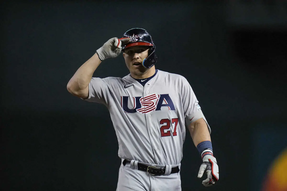 <コロンビア・米国>3安打3打点で勝利に導いた米国・トラウト(AP)