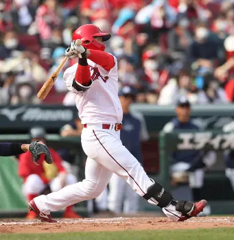 広島の新助っ人デビッドソン待望1号 ヌートバーに負けじ?ゴマすりポーズ