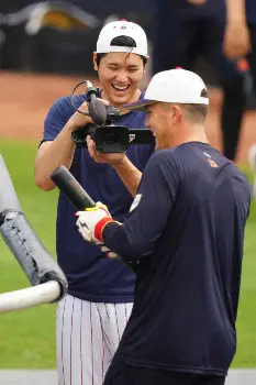 カメラマン・大谷翔平?! スタッフからカメラ拝借し、村上ら撮影 メキシコ戦へ全体練習