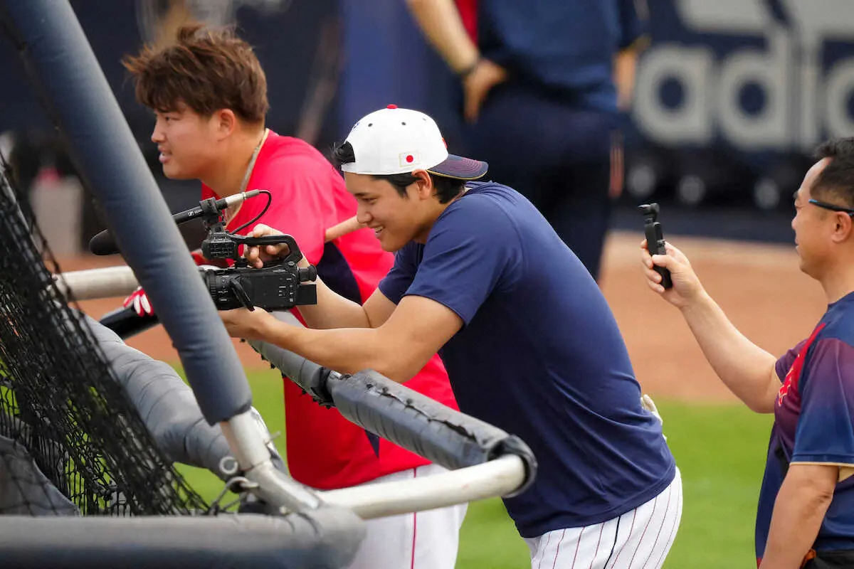 <侍ジャパン練習>キャッチボールする大谷(右はダルビッシュ)(撮影・会津 智海) Photo by スポニチ カメラマン・大谷翔平?! スタッフからカメラ拝借し、村上ら撮影 メキ… ギャラリーで見る この記事のフォト 2023年03月19日の画像一覧 もっと見る 2023年03月19日の画像をもっと見る