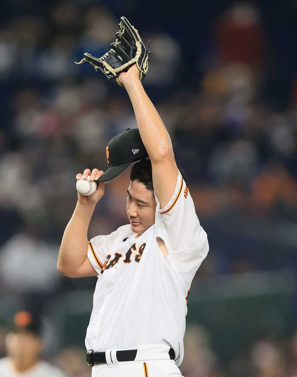 先発した巨人・菅野の姿が2回のマウンドになかった。初回に2安打に失策が絡み1失点。140キロに満たない直球もあり、異変が起きたのは明らかだった。初回に21球を投げ、そのまま降板。原監督は「ちょっと肘が張っている」と交代の理由を説明した。