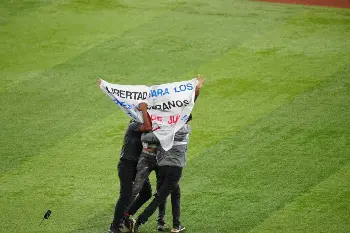 7点を追うキューバが攻撃中の6回2死一塁、2番・モンカダの打席で、観客2人が乱入。メッセージが書かれた白い旗を手に右中間から二塁まで走り込み、係員によって取り押さえられた。その間、試合は中断した。