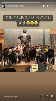 この日、ダルビッシュの投稿前に山川もインスタグラムのストーリーズを更新し、似た構図の写真を投稿していた。山川は「ダルさんありがとうございます」と添えて、侍メンバーとの記念撮影した画像をアップ。大谷翔平や水原通訳は映っていないものの、巨大な銅像の前で侍戦士が笑顔で記念撮影に収まっていた。