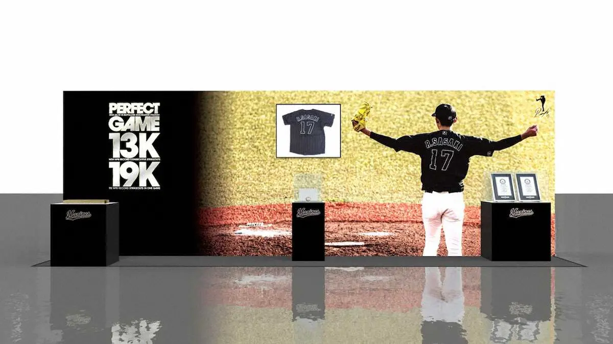 完全試合達成の当日は「PAINT THE STADIUM BLACK」をテーマに、ZOZOマリンスタジアムを真っ黒に染める「BLACK BLACK」の開催日で、黒のビジターユニホームを着用しての達成だった。その偉業にまつわる貴重な記念品の展示ブースを今年の「BLACK BLACK」が開催される4月14~16日のオリックス戦(ZOZOマリンスタジアム)の3日間限定で設置する。