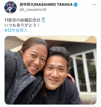 楽天マー君 11度目の結婚記念日「いつもありがとう」まい夫人と2ショットに「ラブラブ」「いい写真」