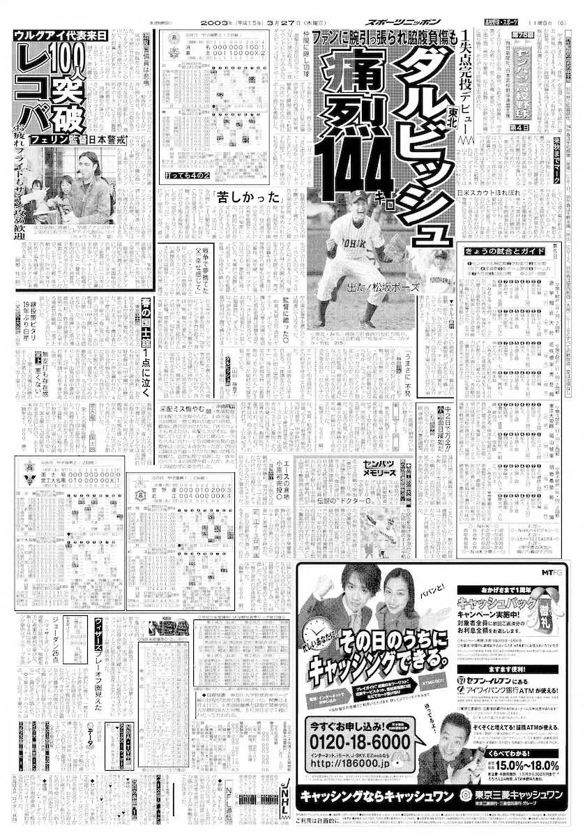 2003年第75回選抜高校野球記念大会第4日第3試合「東北(宮城)―浜名(静岡)」甲子園のネット裏にはNPB12球団だけではなくMLBのスカウトの姿もあった。お目当ては東北のエース、ダルビッシュ有。この春2年生になる16歳の少年だ。