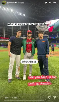 3人ともエンゼルス所属。サンドバルは5回途中まで無失点と好投し、日本打線は大苦戦しただけに水原通訳は「What an outing for my man Sandy…(サンディ、なんて素晴らしい登板なんだ!)」と称え、「またアリゾナで会おう!」「レッツゴーエンゼルス!」と添え、試合後に3人並んで記念撮影した画像をアップした。