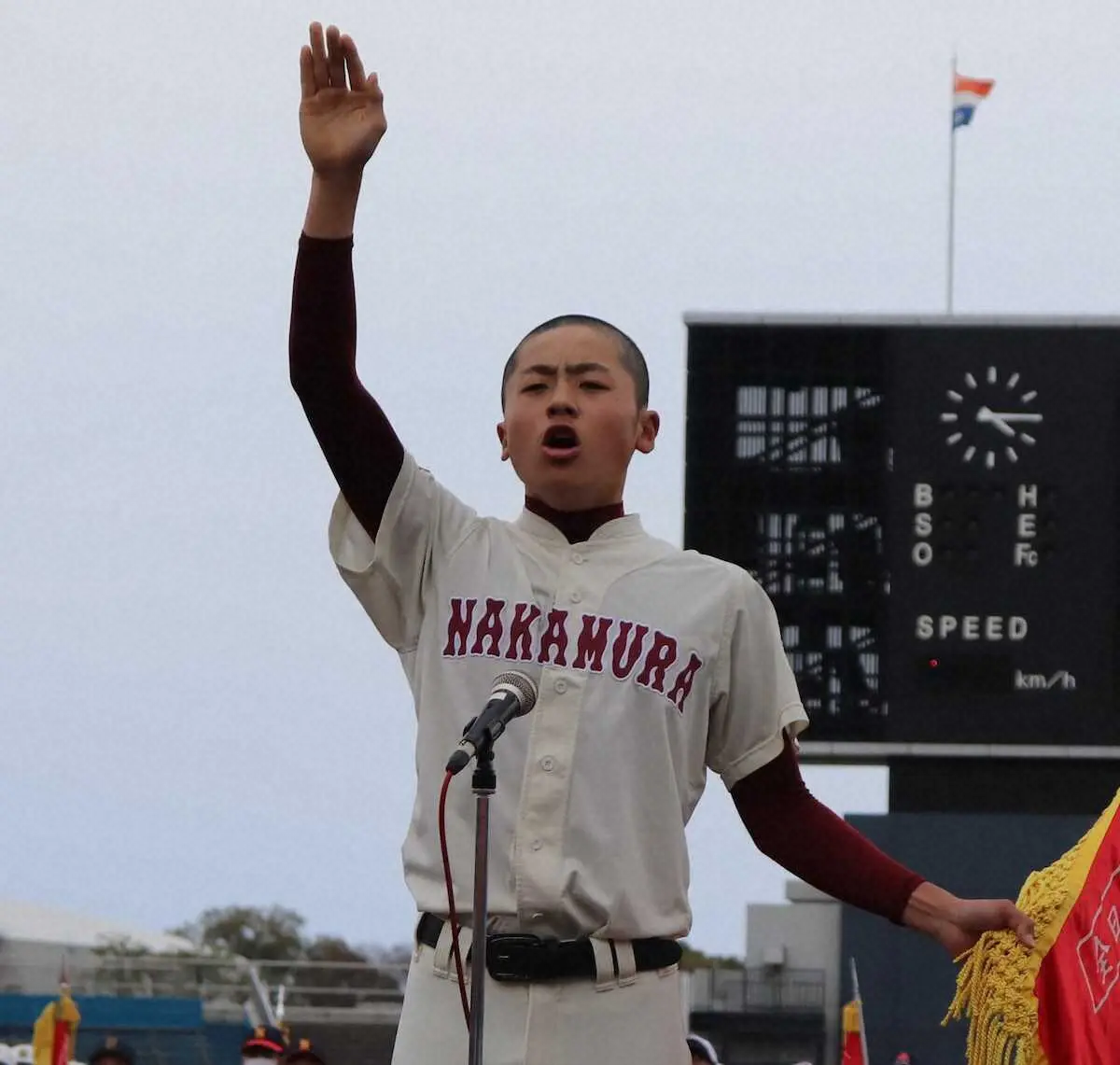福島・中村連合の八巻主将が力強く選手宣誓!第14回全日本少年春季軟式野球大会開会式