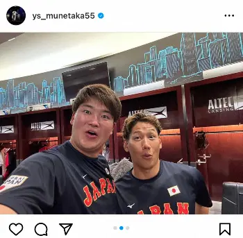 村上は試合後、自身のインスタグラムを更新し「最高です」と劇的勝利を喜んだ。さらに「チーム一丸」とつづり、ロッカールームの様子の写真を投稿し、大谷、吉田正尚外野手、それぞれとの2ショットを投稿。また、ヒーローインタビュー中に佐々木朗希投手と山本由伸投手にドリンクをかけられる動画も投稿した。