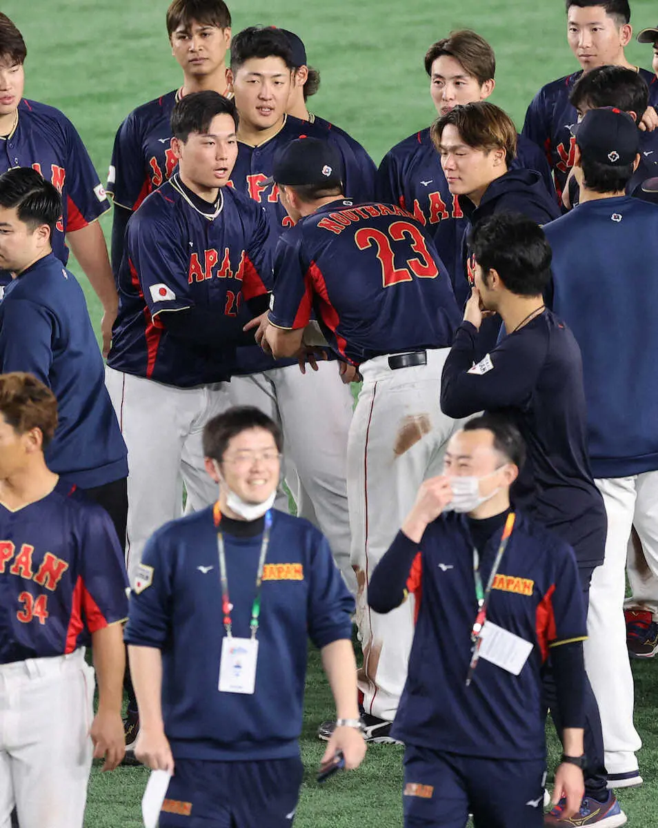 栗林は1次ラウンド東京プールで故障の影響で登板機会がなく、そのまま無念の離脱。14日、マツダスタジアムの残留練習に合流し、リハビリを再開した。侍ジャパンのベンチには左脇腹の張りで出場辞退した鈴木誠也(カブス)とともに毎試合ユニホームが飾られている。