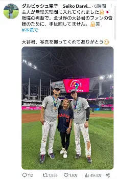 山本聖子さん 世界一の夫&大谷との3ショット写真で「咄嗟の判断」に「素晴らしい気遣い」の声