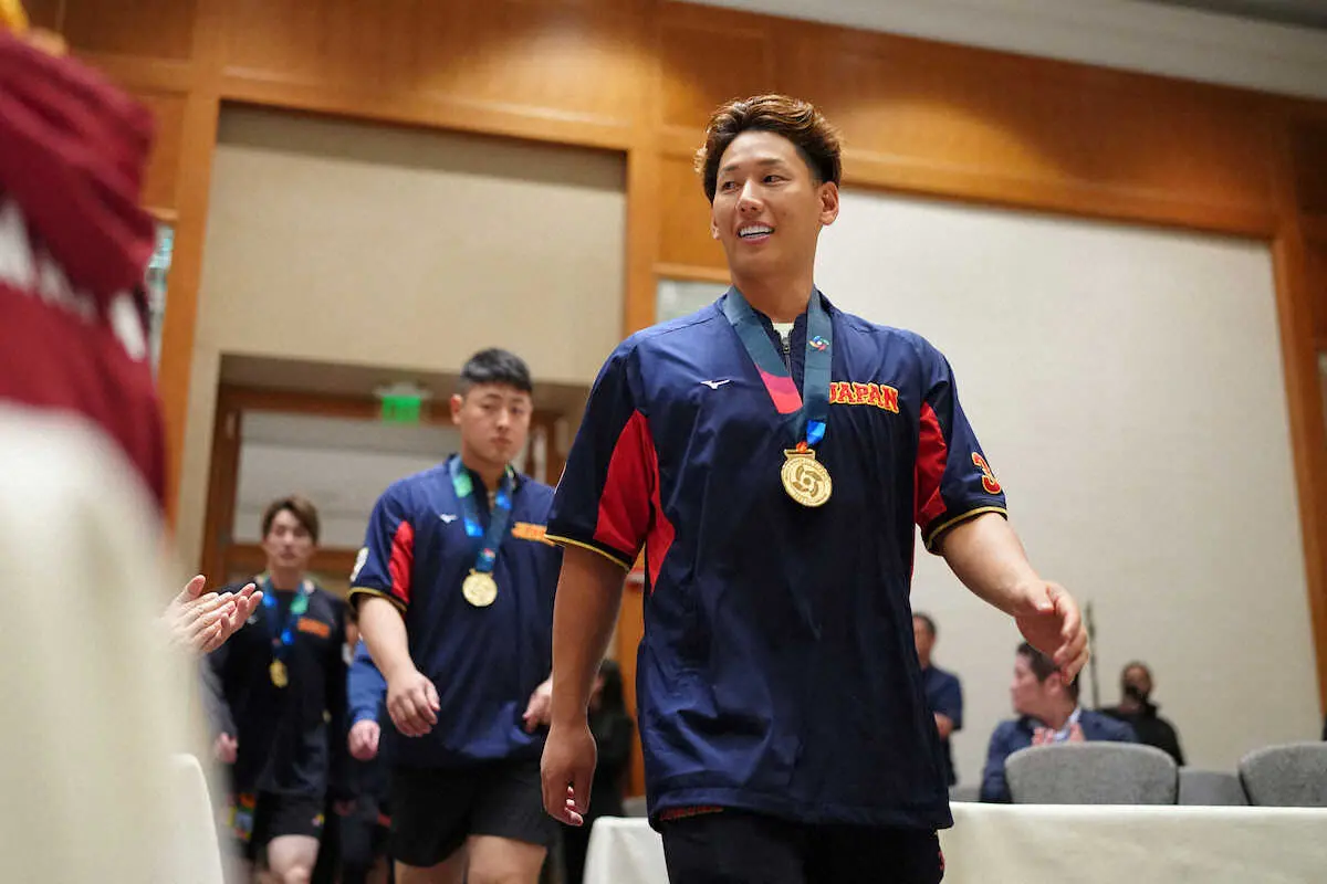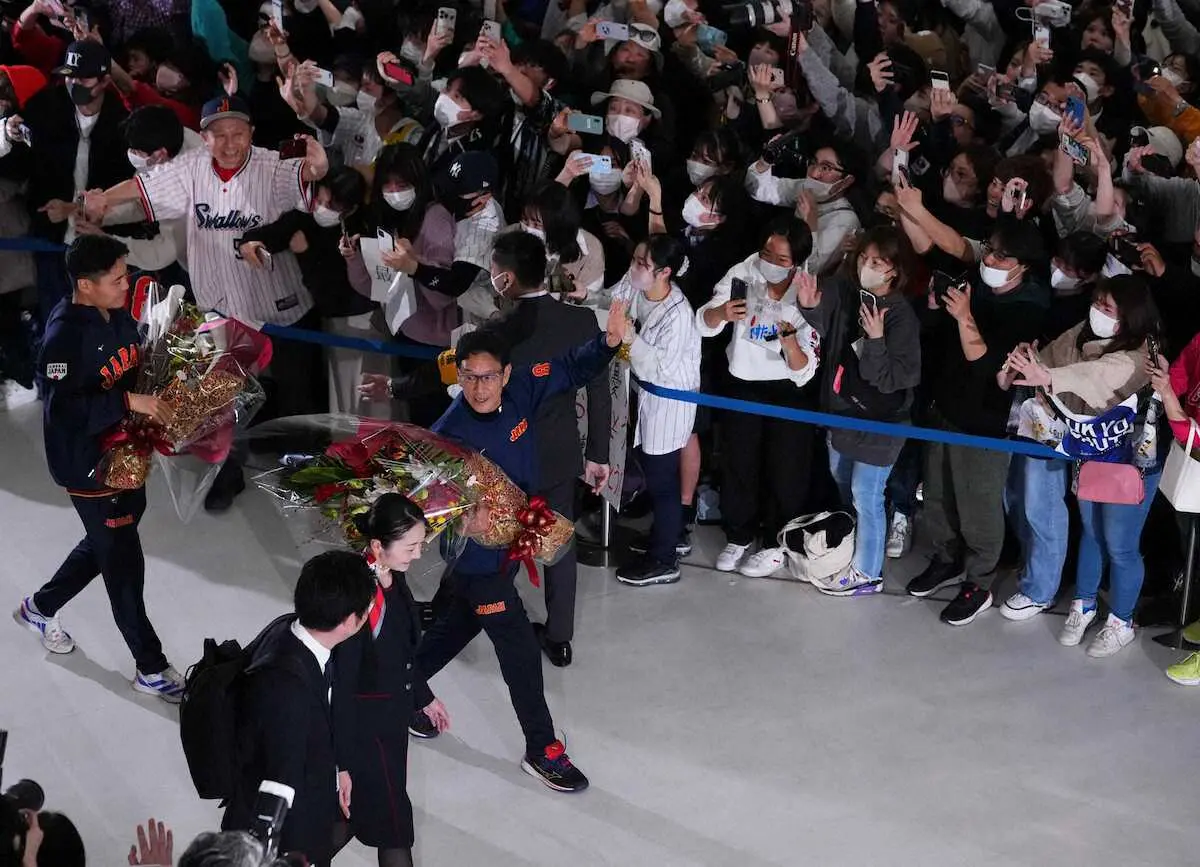 【画像・写真】侍ジャパンが凱旋帰国 祝福の放水シャワーが出迎え ファンも警備規模もサッカーW杯超え空港大フィーバー