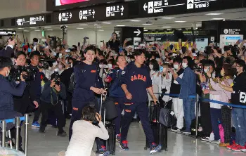 ダルビッシュ有(パドレス)、吉田正尚(レッドソックス)、大谷翔平(エンゼルス)、ヌートバー(カージナルス)のMLB組を除く選手、栗山監督らは帰国の疲れも見せず、スーツに着替え会見場に登場した。成田空港到着時には多くのファンが出迎え騒然。空港関係者によると昨年12月、サッカーFIFAワールドカップ(W杯)カタール大会で初の8強まであと一歩に迫った日本代表が帰国した際に比べ、「警備規模は同程度か少し多いぐらい」だった。