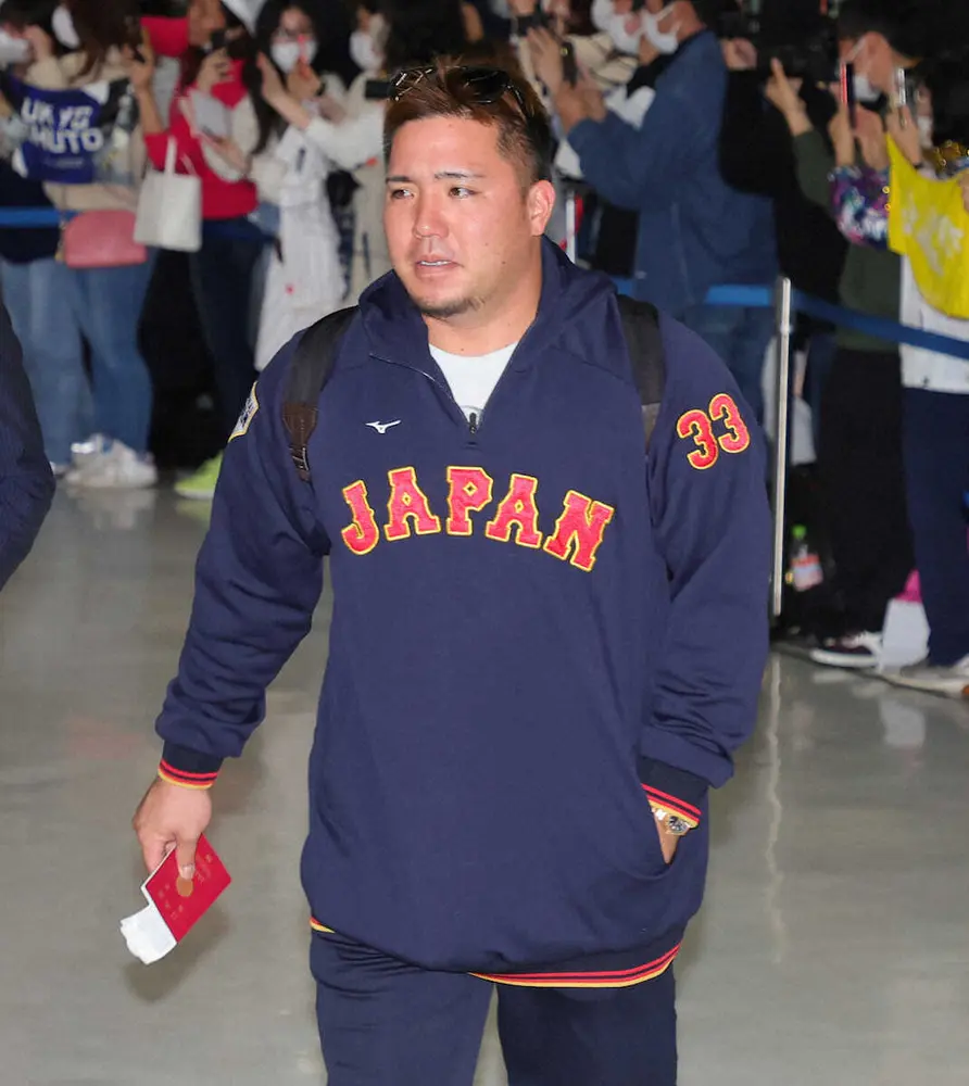 <侍ジャパン帰国>帰国した山川(撮影・藤山 由理)