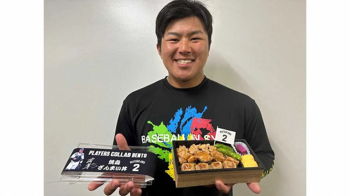 松川は「今回は初めてボクのフードメニューが販売されるということでうれしいっス!是非この焼鳥ざんまい丼を食べていただき、力をつけて大きな声援で応援してください!」とコメントしている。