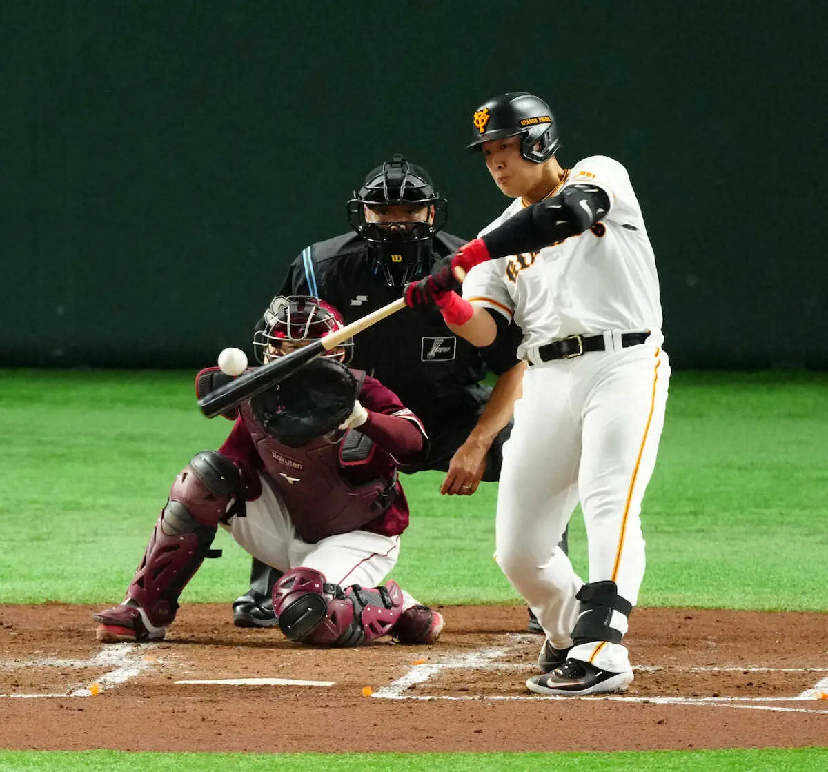 侍ジャパンの一員としてWBCで日本の優勝に貢献した岡本和が「4番・三塁」で先発出場。0―0の2回、先頭で迎えた第1打席で、左腕・バニュエロスの147キロ直球を捉え、左前に運んだ。「(開幕まで)残り少ないのでしっかりやって、ケガしないように開幕を迎えられたらなと思います」と話していた大砲が、復帰した1打席目から結果を出した。