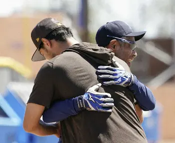 マリナーズとのオープン戦前にイチローさん(左)と言葉を交わすパドレスのダルビッシュ=ピオリア(共同) Photo by 共同 ダル、キャンプ地で居残り調整 公式戦初登板は日本時間4月5日の見込み … ギャラリーで見る この記事のフォト 2023年03月27日の画像一覧 もっと見る 2023年03月27日の画像をもっと見る