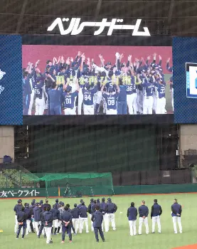 <西武練習>練習前、選手に向け流されたVTR (撮影・白鳥 佳樹) Photo by スポニチ 就任1年目西武・松井稼頭央監督 開幕戦前日「わくわくが止まらない」王者… ギャラリーで見る この記事のフォト 2023年03月30日の画像一覧 もっと見る 2023年03月30日の画像をもっと見る